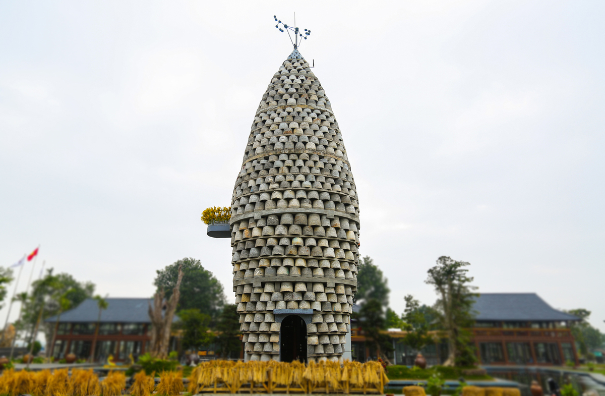 Theo ông Sánh, tháp được thiết kế theo hình hạt lúa, dựng theo chiều thẳng đứng, bên trong có bậc thang hình xoắn ốc lên xuống. Còn bên ngoài được trang trí bằng trục đá kéo lúa, cối đá xay lúa…nhằm tạo ra một không gian gắn liền với nền văn hóa lúa nước.
