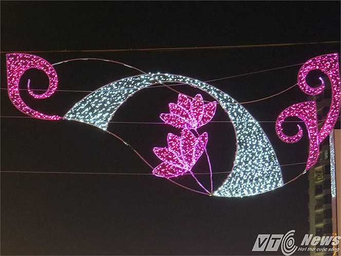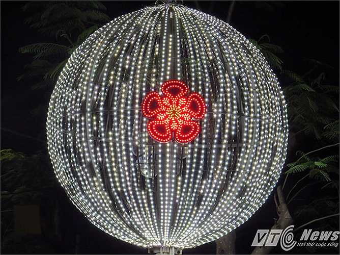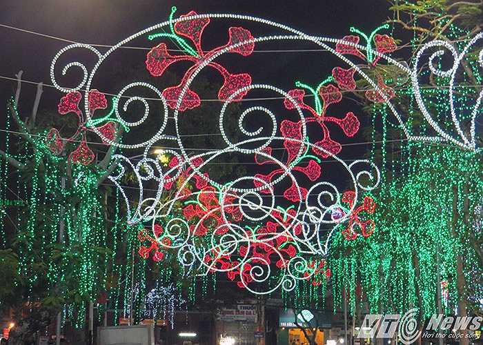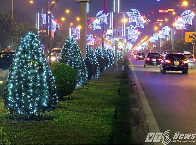 Hàng cây giữa dải phân cách được lắp đặt đèn nháy lấp lánh, tôn lên vẻ đẹp những hàng cây cảnh chạy dài suốt tuyến đường.
