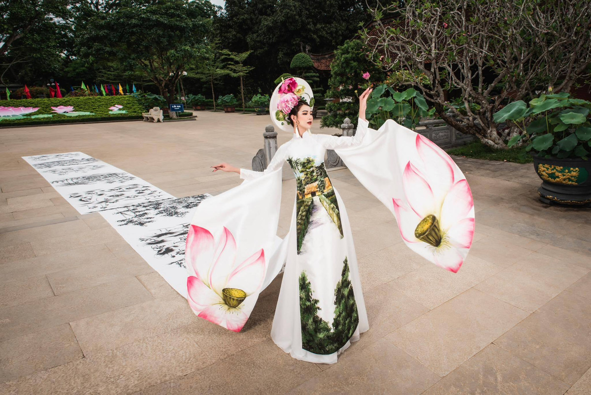 BST gồm những thiết kế họa tiết hoa sen là chủ đạo, có màu sắc rực rỡ, kiểu dáng cách tân, trẻ trung nhưng vẫn kín đáo và đảm bảo thuần phong mỹ tục, trang nghiêm. Với chất liệu chính là lụa cao cấp, lụa Hàn Quốc, tơ tằm, oganra, những tà áo dài càng được tăng thêm vẻ sang trọng, cá tính mà vẫn giữ được nét mềm mại, duyên dáng.