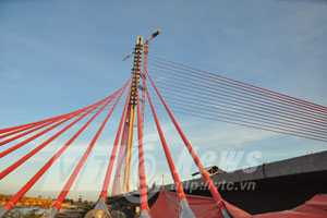 (VTC News) - Kết cấu độc đáo khi sử dụng hệ dây văng 3 chiều kết hợp trụ tháp nghiêng 12 độ, cầu được dự kiến đăng ký kỷ lục Guiness.