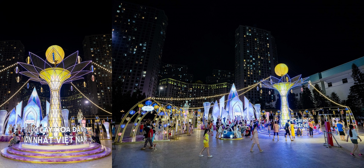Cây Đèn lồng hoa đăng có chiều cao kỷ lục lên tới 8m, tương đương một tòa nhà 2 tầng, với điểm nhấn là mặt trăng không lồ đường kính 2m ở phía trên cùng. Nâng đỡ mặt trăng hy vọng là hình ảnh bông hoa 12 cánh, tượng trưng cho 12 tháng trong năm với mong muốn đem đến niềm vui, nụ cười cho khách hàng của Vincom không chỉ trong dịp Tết trung thu, mà xuyên suốt mỗi ngày trong năm.