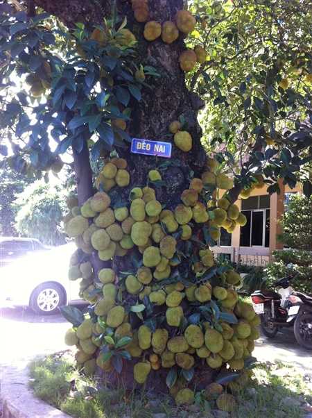 Khách khi đến làm việc với Công ty cổ phần than Đèo Nai (Cẩm Phả, Quảng Ninh), ai cũng ngỡ ngàng vì ngay cổng ra vào công ty có một cây mít na quả trĩu nặng suốt từ gốc lên ngọn.