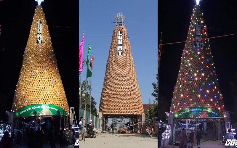 Một số hình ảnh PV VTC News ghi về cây thông Noel làm từ gần 7.000 nồi đất ở Nghệ An: