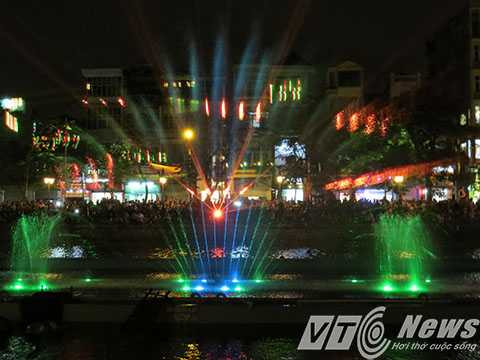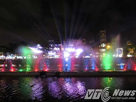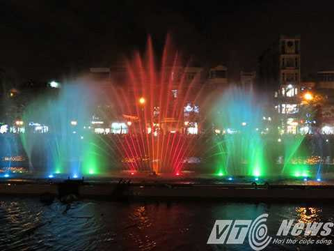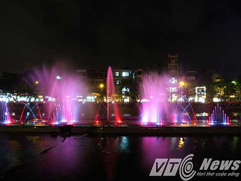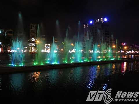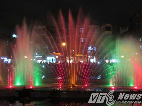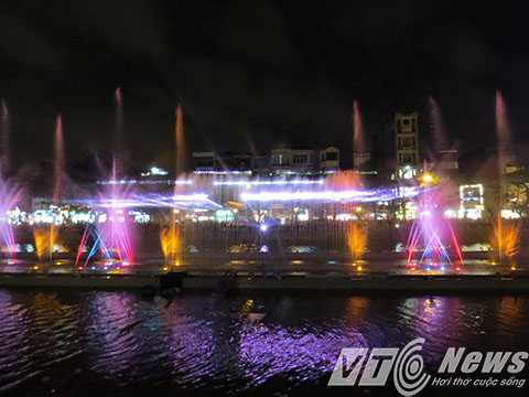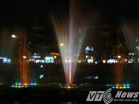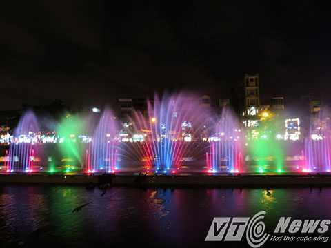 | Hệ thống phun nước kết hợp với hệ thống đèn nhiều màu sắc tạo nên bức tranh nước huyền ảo. |