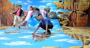 Trong không gian 800m2, hơn 50 bức tranh có kích thước, màu sắc đa dạng, không gian sống động được vẽ với kỹ thuật Trick of the eye (đánh lừa thị giác) đã mang lại cho người xem Đà Nẵng một cảm giác mới lạ.