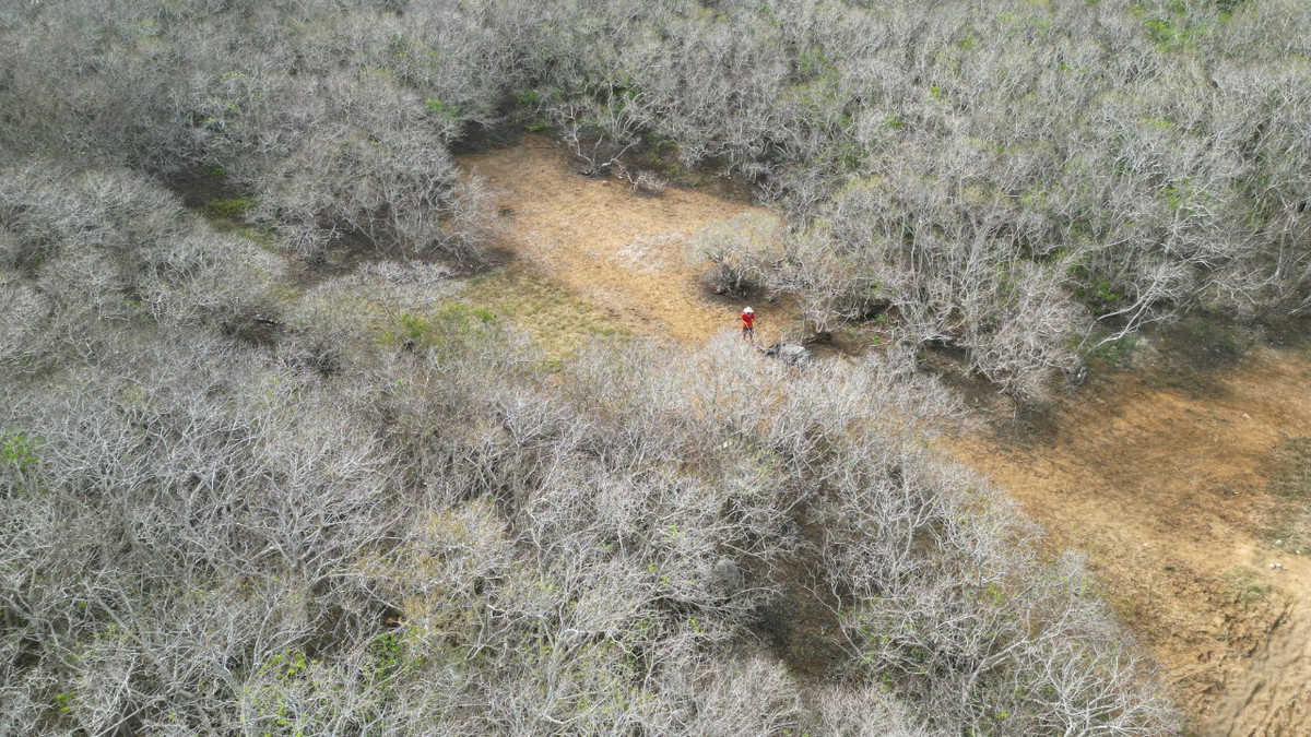 Năm nay, rừng Rú Chá bước vào mùa thay lá sớm hơn thường lệ. Cả cánh rừng dần chuyển từ màu xanh sang vàng, rồi bao trọn một không gian rộng lớn với gam màu trắng xám, trên là bầu trời xanh ngát tạo nên một bức tranh phong cảnh đẹp đến nao lòng. (Ảnh: N.T)