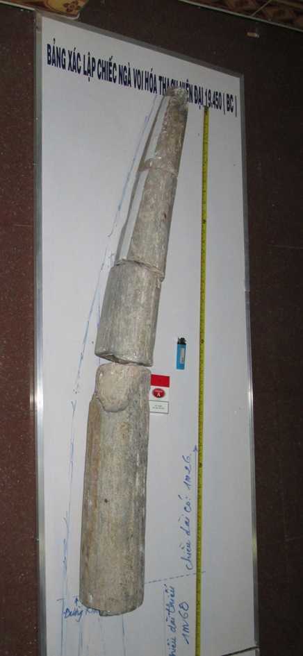 Theo kết quả phân tích C - 14 (Cacbon 14, độ tin cậy 98%) của Viện khảo cổ học Việt Nam, chiếc ngà voi hoá thạch của ông Sơn (49 tuổi, phường Hội Phú, TP Pleiku, Gia Lai) có niên đại 19.450 năm, và đây mới chỉ là phần ngọn của chiếc ngà voi, với suy đoán chiếc ngà có thể dài đến 2,8m, gốc chiếc ngà có chu vi cỡ 85cm.