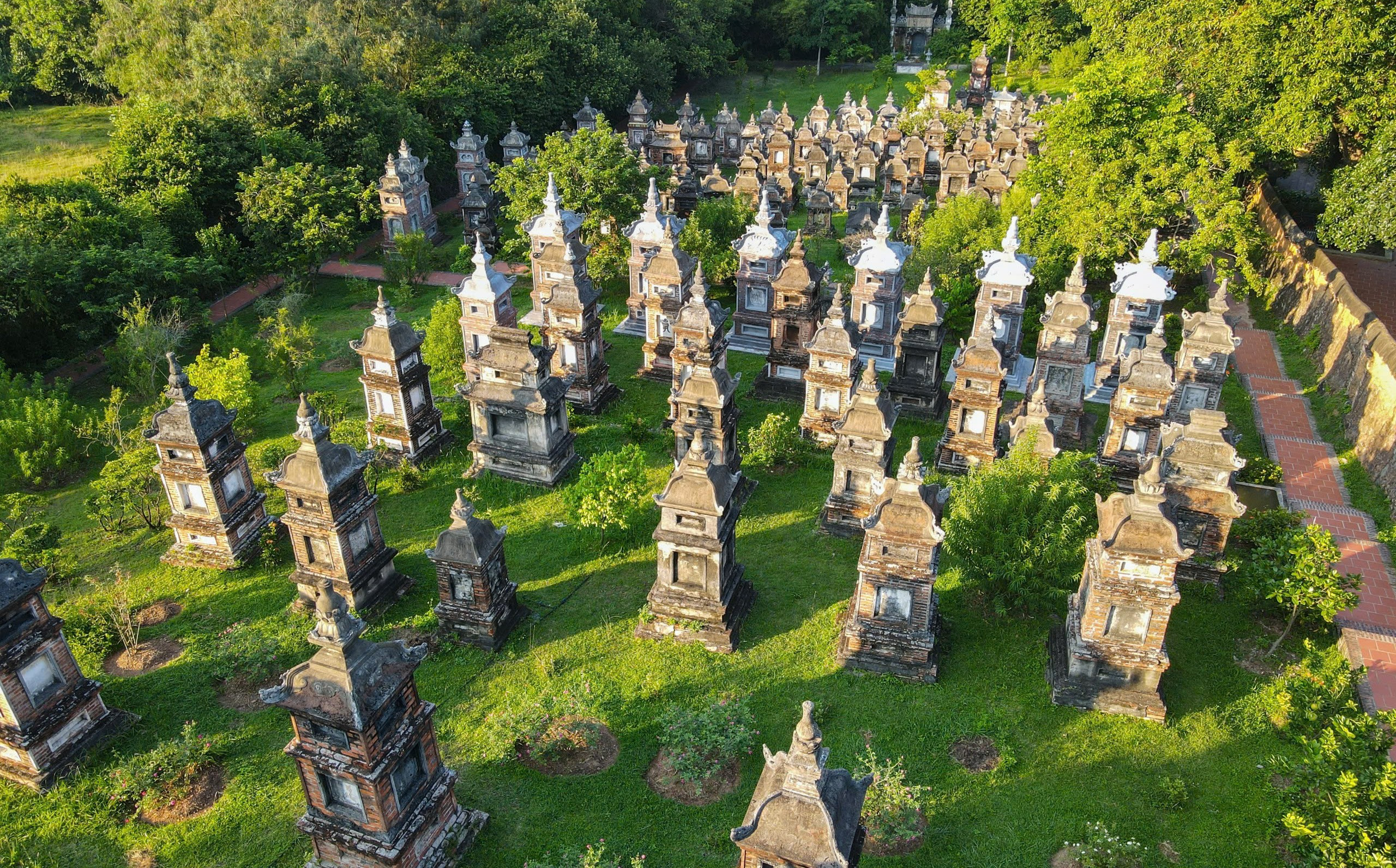 Các ngôi tháp mộ xếp hàng hàng, lớp lớp và được xếp đặt theo những quy định riêng rất chặt chẽ của thiền môn.