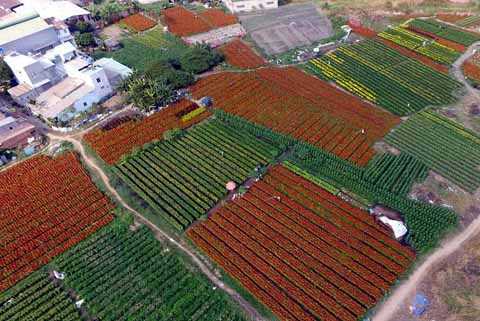 | Những vườn hoa mai, cúc, hướng dương, vạn thọ nở đúng dịp hứa hẹn 1 vụ hoa Tết thắng lợi. |