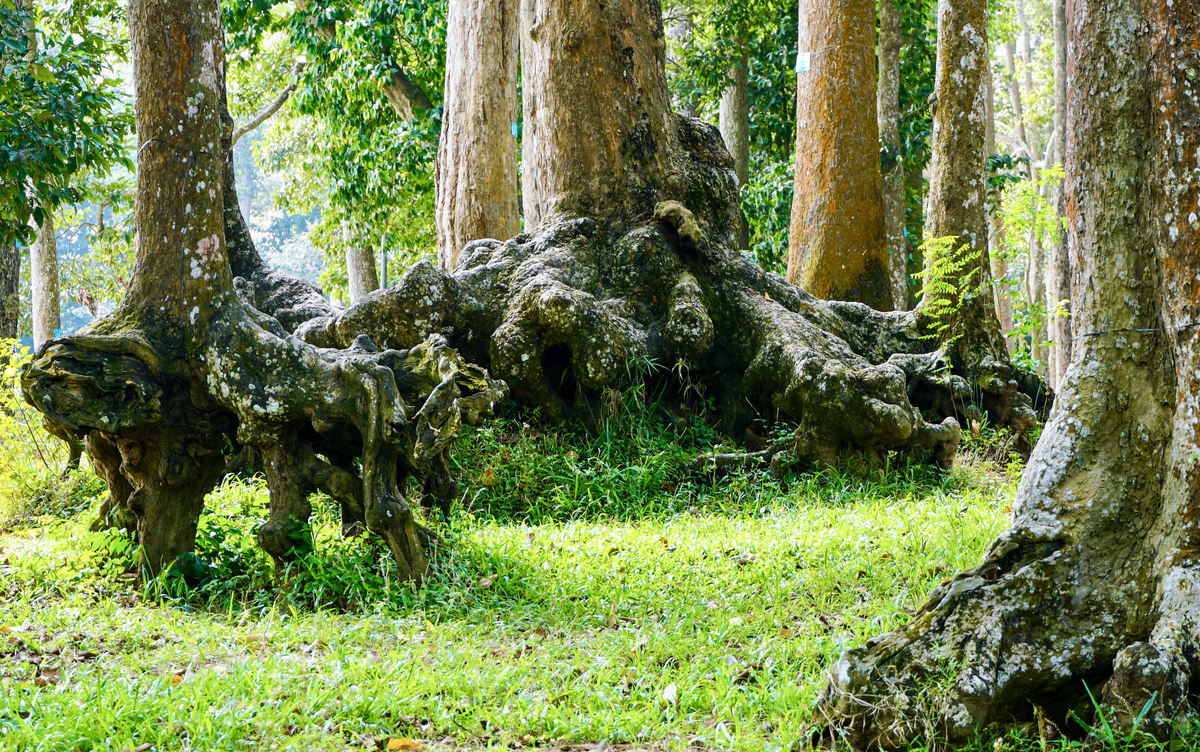 Nhiều rễ cây kích thước lớn nổi trên mặt đất cao từ 1 - 2m, đầy u nần.