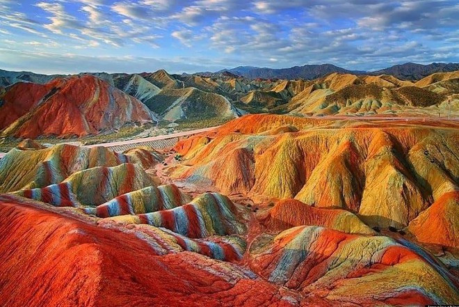 Chuỗi dãy núi cầu vồng ở công viên địa chất Trương Dịch Đan Hà (Trung Quốc) trông như những vệt màu rực rỡ, được thiên nhiên biến hóa hơn 24 triệu năm tạo nên.