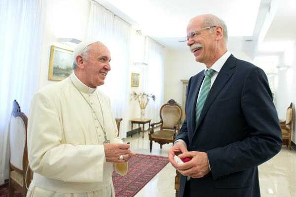 Tiến sĩ Dieter Zetsche - Chủ tịch Hội đồng quản trị của Daimler AG - trao chìa khóa xe Popemobile cho Đức Giáo hoàng Francis
