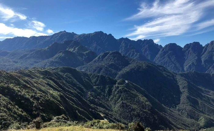 Mặt trời lên cao, những đám mây cũng biến mất, khiến những dải núi lộ ra rõ mồn một, hùng vĩ choáng ngợp.