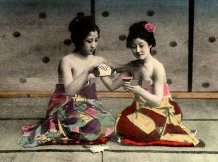 Ngoài thời gian bận rộn tiếp đón nam nhân, quan khách trong các trà quán, lượt là trong trang phục truyền thống và chỉn chu trong từng điệu nhảy, lời ca, geisha và vũ nữ thời bấy giờ cũng có những phút bình yên quây quần trò chuyện và giải khuây cùng nhau với phong thái dân dã, suồng sã tình chị em.