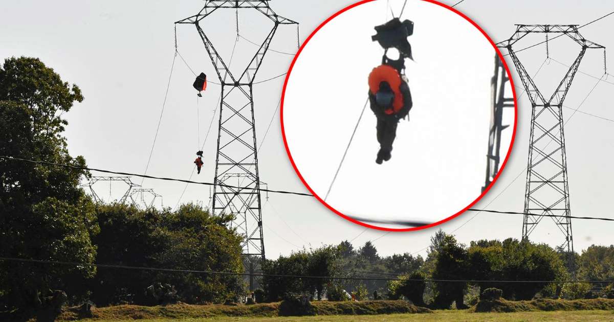 Nhưng 1 trường hợp bị kẹt lại trên đường điện cao thế 250.000 volt, treo lơ lửng phía trên một cánh đồng.