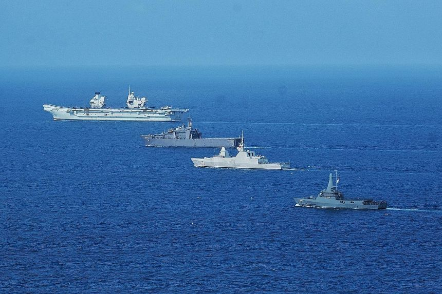 Sau Singapore, nhóm tác chiến tàu sân bay Queen Elizabeth dẫn đầu là tàu sân bay HMS Queen Elizabeth sẽ thực hiện loạt cuộc tập trận đa quốc gia ở Biển Đông. Nhóm tàu của Anh sẽ trở lại Singapore vào cuối năm nay.