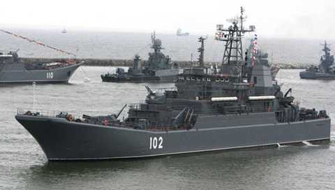 | tàu đổ bộ Kaliningrad và Alexander Shabalin thuộc Hạm đội Baltic của Nga - Ảnh: Ria Novosti |