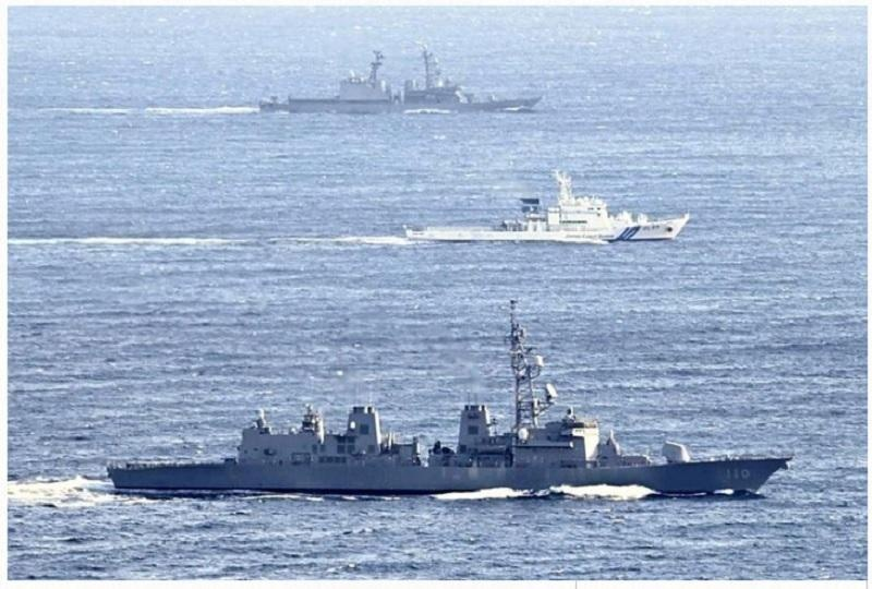 Tàu khu trục và tàu tuần duyên Nhật tập trận chung hôm 22/12.