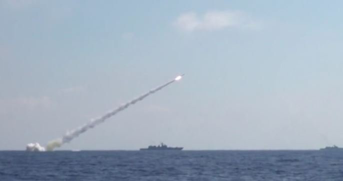 Tên lửa Kalibr được phóng từ 2 tàu khu trục Đô đốc Essen, tàu Đô đốc Grigorovich và tàu ngầm Krasnodar ở phía đông Địa Trung Hải đã nhắm trúng các mục tiêu là tiền đồn chỉ huy của IS và kho đạn nhóm phiến quân ở Hama, Syria, theo RT.