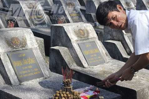 Chỉ tay vào người đàn ông dáng vẻ gầy gò, khắc khổ, đang ngồi bần thần bên nấm mồ phía bên phải nghĩa trang, anh quản trang bảo: “Năm nào cũng vậy, cứ đến lễ tết, những ngày tháng 2, ngày 12/7, ngày thương binh liệt sĩ 27/7, là bác kia cũng đều đến nghĩa trang, ngồi trò chuyện thật lâu ở nấm mồ đó. Tôi chưa hỏi chuyện, nhưng chắc là đồng đội của liệt sĩ”.
