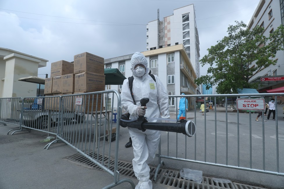 Phun khử trùng tại Bệnh viện E (Hà Nội).