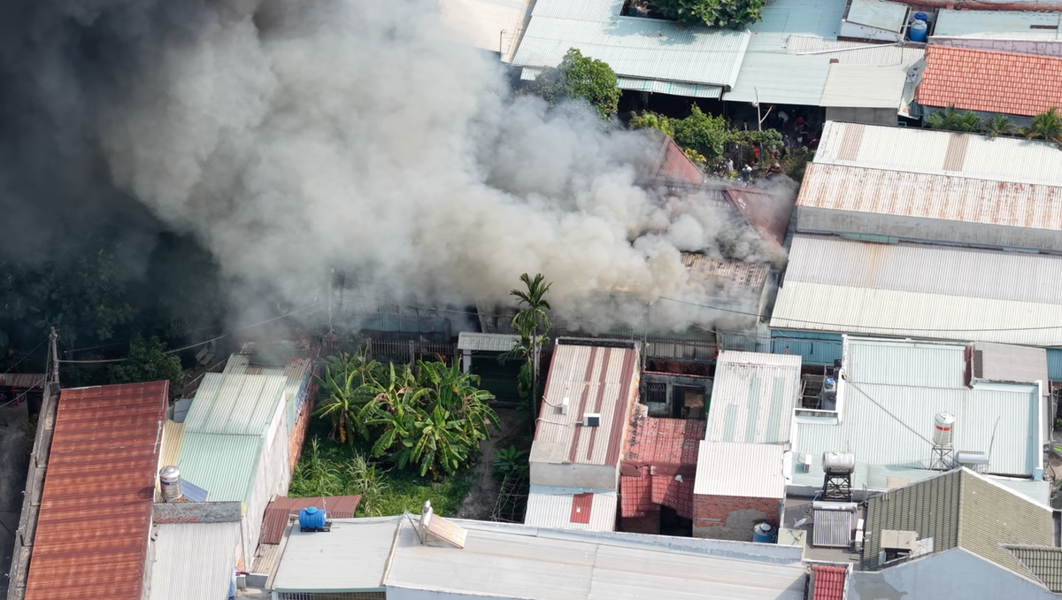 Khi phát hiện, những người bên trong hô hoán nhau dùng bình chữa cháy mini dập lửa nhưng bất thành. Ngọn lửa nhanh chóng lan rộng sang các căn nhà kế bên, nhiều người tháo chạy. Khói đen bốc cao, tỏa mù mịt trong khu dân cư.