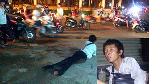 Chứng kiến cảnh hai thanh nhiên hành hung người tàn tật, nhiều người đi đường đã lao vào khuyên can. Thấy đông người tập trung phản đối hành vi của mình, hai thanh niên vội phóng xe bỏ đi.