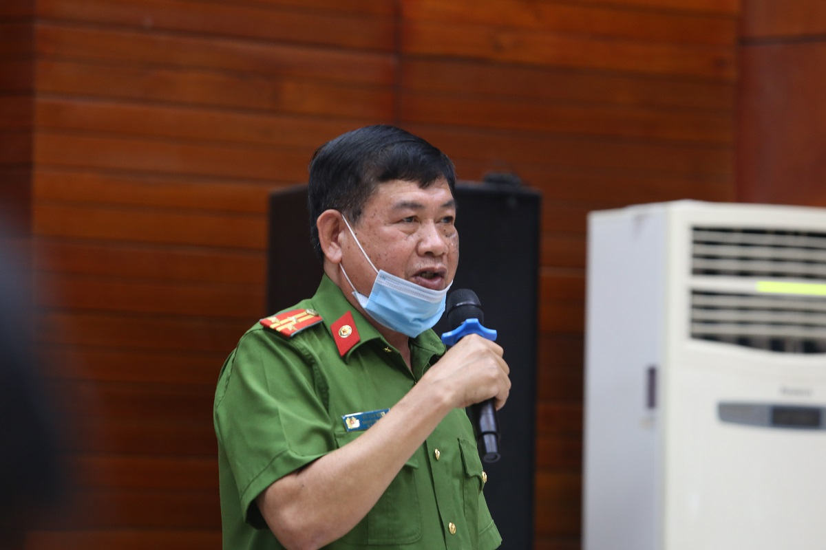 Thượng tá Võ Văn Minh phát biểu tại buổi họp báo.