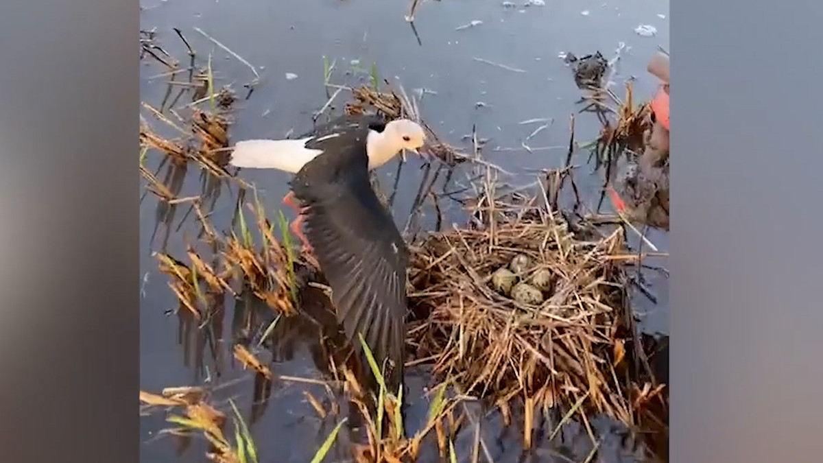 Chim mẹ chặn đứng máy cày bảo vệ những quả trứng