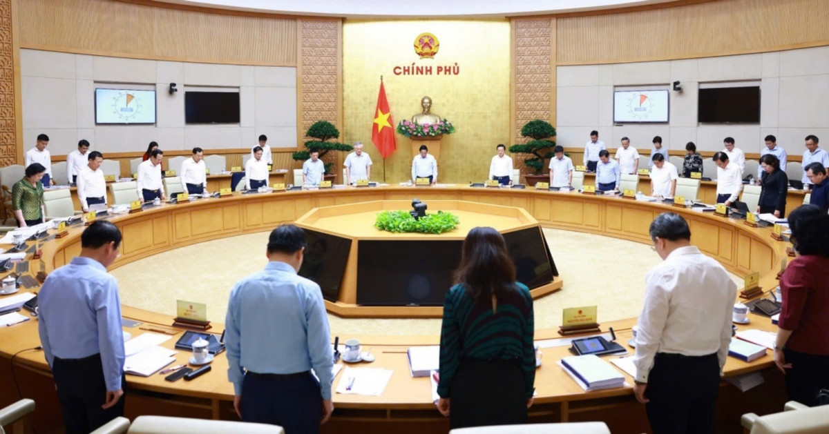 Trước khi vào phiên họp, trước tình trạng mưa bão, sạt lở, ngập lụt gây hậu quả nghiêm trọng về người và tài sản, Chính phủ dành một phút mặc niệm các nạn nhân bị thiệt mạng do bão lũ gây ra.