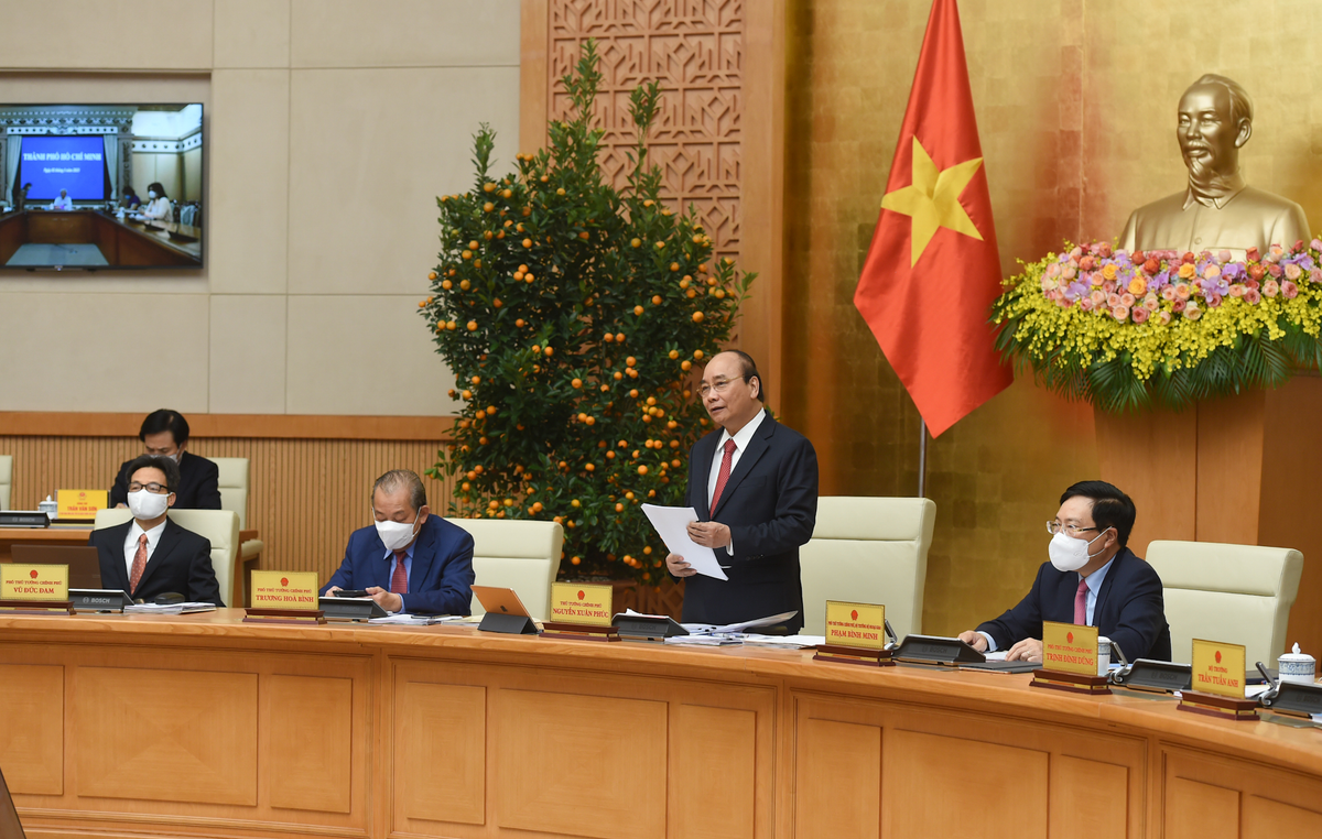 Thủ tướng Nguyễn Xuân Phúc phát biểu khai mạc phiên họp Chính phủ thường kỳ tháng 1/2021. (Ảnh VGP)