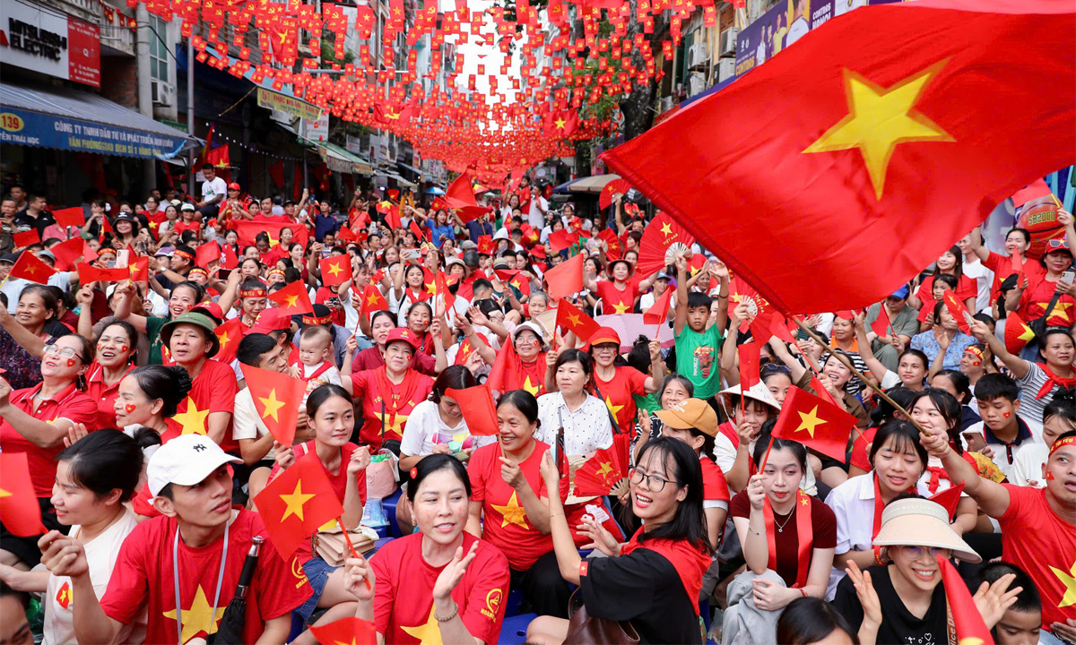 Người dân chờ xem diễu binh, diễu hành dịp kỷ niệm 80 năm Cách mạng tháng Tám và Quốc khánh 2/9.