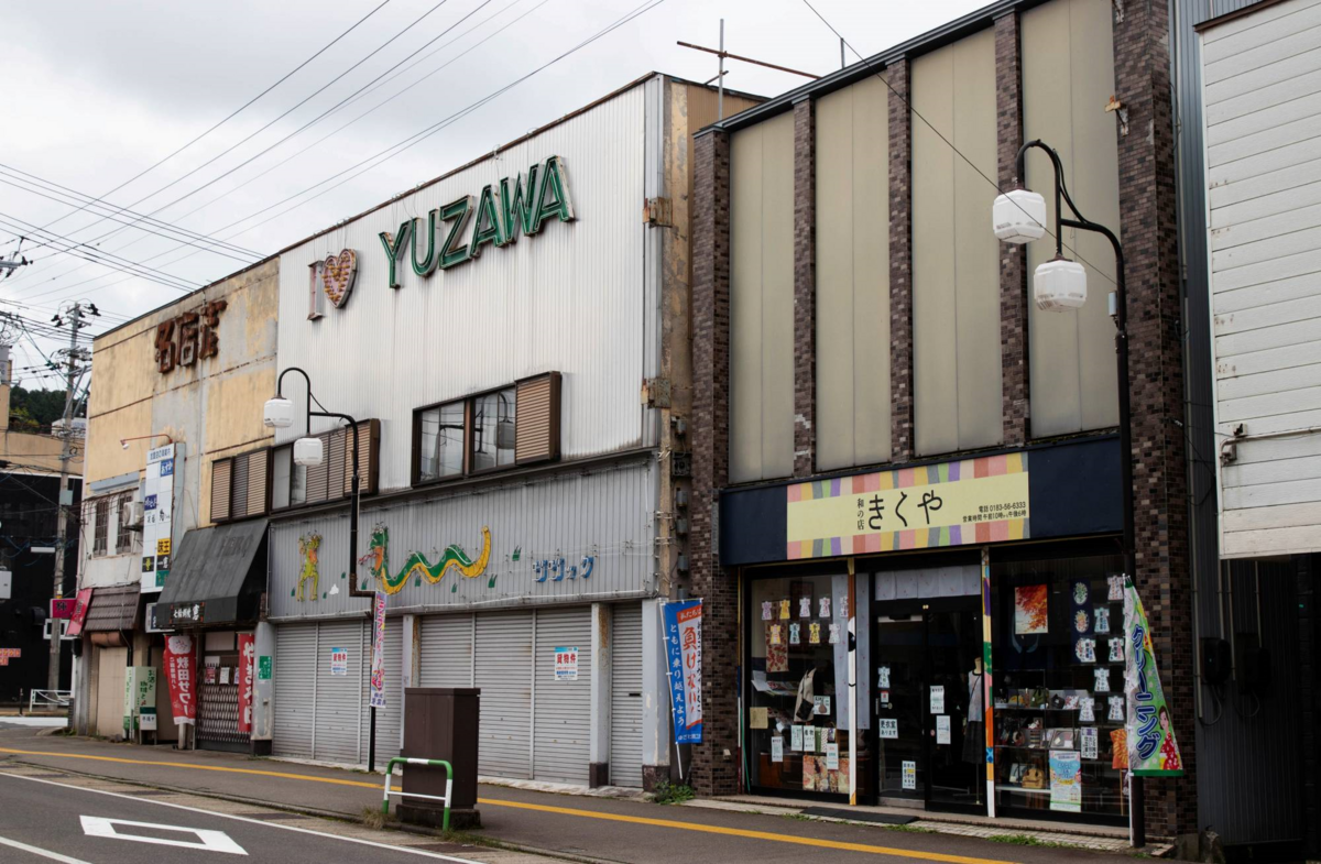 Tại thành phố Yuzawa, hơn một nửa số cửa hàng trong một khu mua sắm ở trung tâm thành phố đóng cửa. Ngoài đướng, thâp thoáng bóng dáng của những người già qua đường.