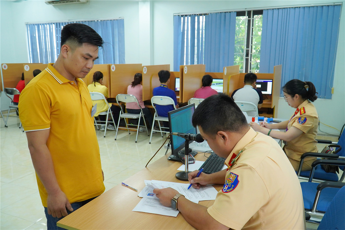 Công an tỉnh Thái Nguyên tổ chức thi sát hạch lái xe.