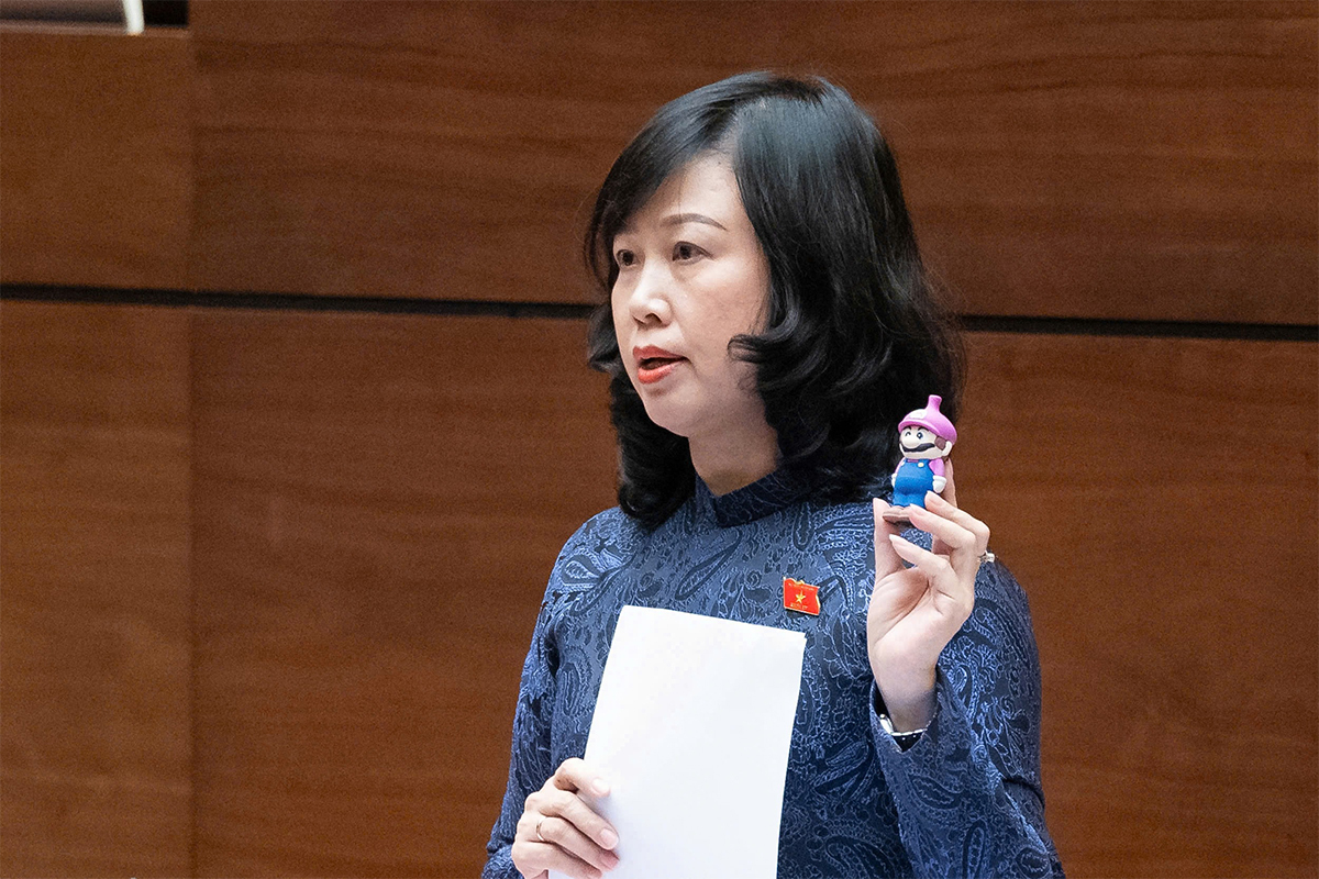 Bộ trưởng Đào Hồng Lan mang thuốc lá điện tử vào nghị trường để minh họa khi trả lời chất vấn tại Kỳ họp thứ 8, Quốc hội khóa XV.