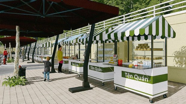 Phối cảnh phố hàng rong tại công viên Bách Tùng Diệp