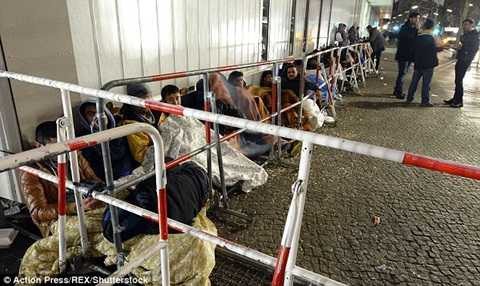 | Người tị nạn trước cửa văn phòng nhập cư Berlin |