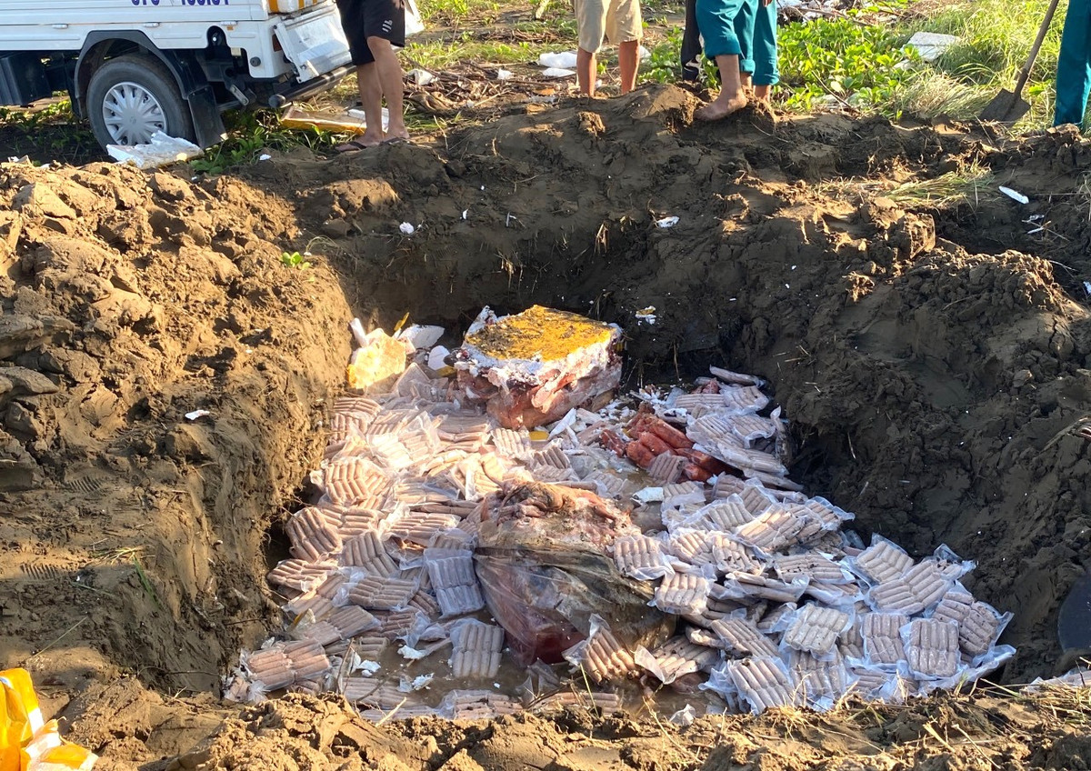 Tại thời điểm kiểm tra, lực lượng chức năng phát hiện trên xe chở 2 tạ xúc xích đông lạnh, toàn bộ số hàng đã bốc mùi hôi thối. Chủ xe không xuất trình được hóa đơn chứng từ chứng minh nguồn gốc xuất xứ của số hàng nói trên.