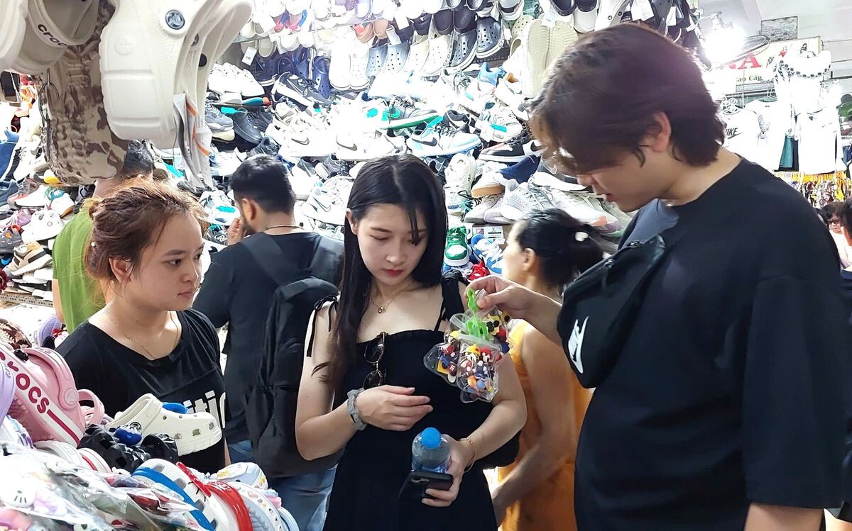 Du khách Hàn Quốc mua sắm hàng hóa tại chợ Hàn Đà Nẵng.