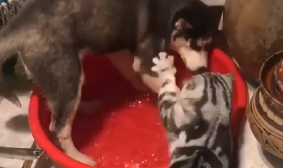 Chó bị mèo đánh đòn vì tội lãng phí nước