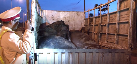 Theo đó, ngày 25/12, trên tuyến đường Hồ Chí Minh (thuộc dốc Hàm Rồng, thành phố Pleiku, Gia Lai), Phòng CSGT và Phòng Cảnh sát môi trường tỉnh Gia Lai bắt quả tang chiếc xe ô tô tải mang biển kiểm soát: 81C-094.36 đang vận chuyển 4 con bò trong tình trạng đã chết và bốc mùi hôi thối đi tiêu thụ.
