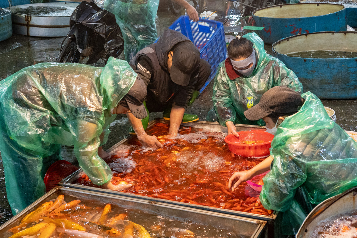Chợ cá Yên Sở nổi tiếng là chợ đầu mối lớn nhất ở Hà Nội, cung cấp cá cho toàn thành phố. Những ngày này, chợ cá tấp nập kẻ mua, người bán cá chép để chuẩn bị cho ngày Tết ông Công ông Táo.
