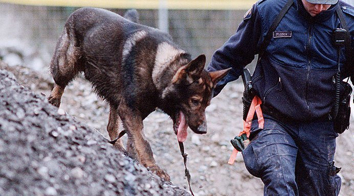 Hai đối tượng tình nghi đã bỏ chạy khỏi hiện trường và chú chó cảnh sát đã nhanh chóng đuổi theo dấu vết của chúng. Chú cảnh khuyển này lao vào bụi rậm và sau đó có tiếng súng nổ.