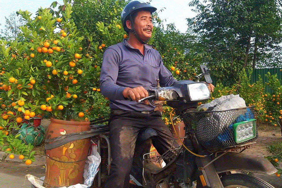 "Trung bình mỗi ngày chạy được từ 7 đến 10 chuyến, giá chở cây cảnh tùy thuộc vào quãng đường nhưng dao động từ 50 đến 300 nghìn đồng, trừ chi phí mỗi ngày cũng kiếm được hơn một triệu đồng", anh Lê Duy Phát ở TP Hà Tĩnh nói khi đang bê cây quất Tết lên xe để chở về nhà cho khách.