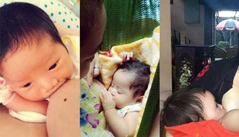 | Hàng trăm bà mẹ bỉm sữa đăng ảnh cho con bú nhằm bênh vực Ốc Thanh Vân cũng như tôn vinh việc nuôi con bằng sữa mẹ. (Ảnh: Facbook Chị Diễm Quỳnh). |