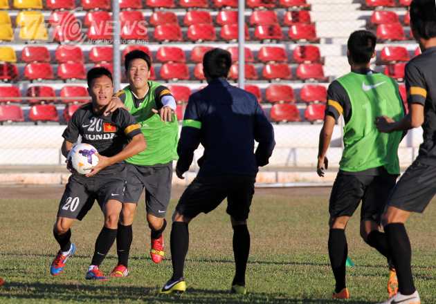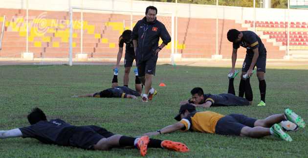 16/12/2013 06:37:00 +07:00(VTC News) - Buổi tập của U23 Việt Nam chiều 16/12 là một buổi thả lỏng, HLV Hoàng Văn Phúc chủ yếu cho các cầu thủ chơi với bóng.