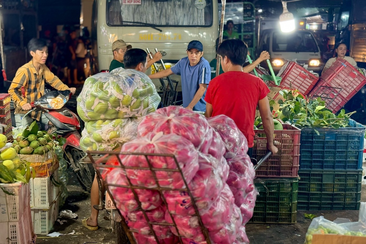 Ghi nhận của PV Báo Điện tử VTC News những ngày cậnTết Bính Ngọ 2026 tại chợ đầu mối nông sản Thủ Đức (TP.HCM), từ khoảng 19h, khu vực cổng chợ đã bắt đầu đông phương tiện. Xe tải từ Lâm Đồng, Đắk Lắk, các tỉnh miền Tây và khu vực Đông Nam Bộ lần lượt vào bãi dỡ hàng.