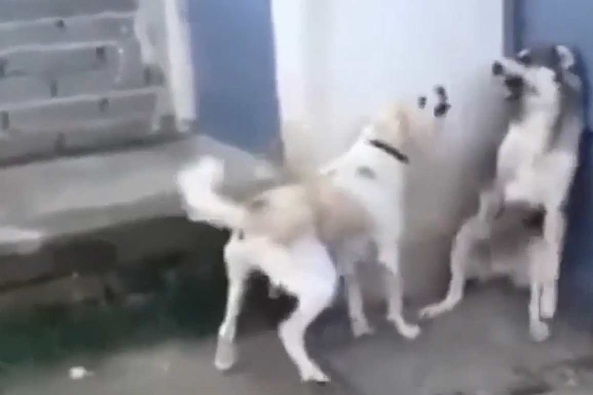 2 con chó mải đánh nhau, để 'kẻ thứ 3' chén sạch đồ ăn