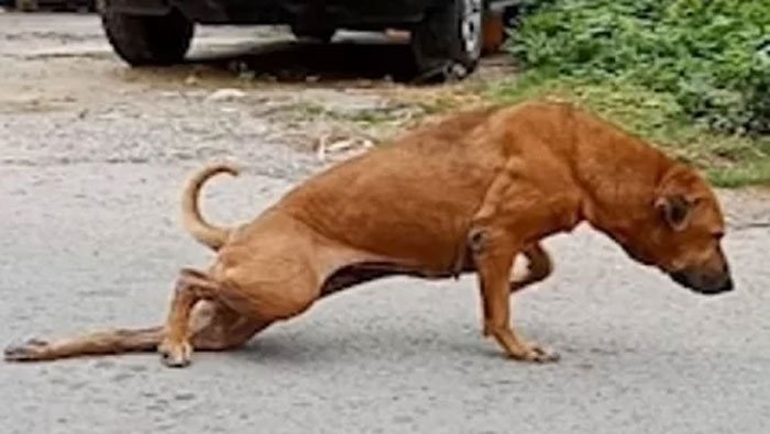 Con chó thông minh vờ bị thương bằng cách kéo lê chân sau qua đường, thu hút sự chú ý của nhiều cư dân địa phương hôm 4/8.