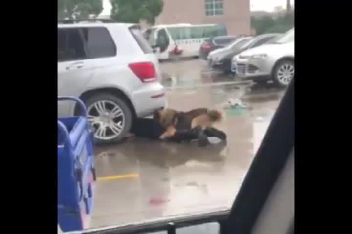Đoạn video được cho là quay tại Trung Quốc ghi lại cảnh một người đàn ông bị chó tấn công, anh ta đã cố chui người vào gầm xe ô tô để trốn nhưng vẫn không thoát nạn.